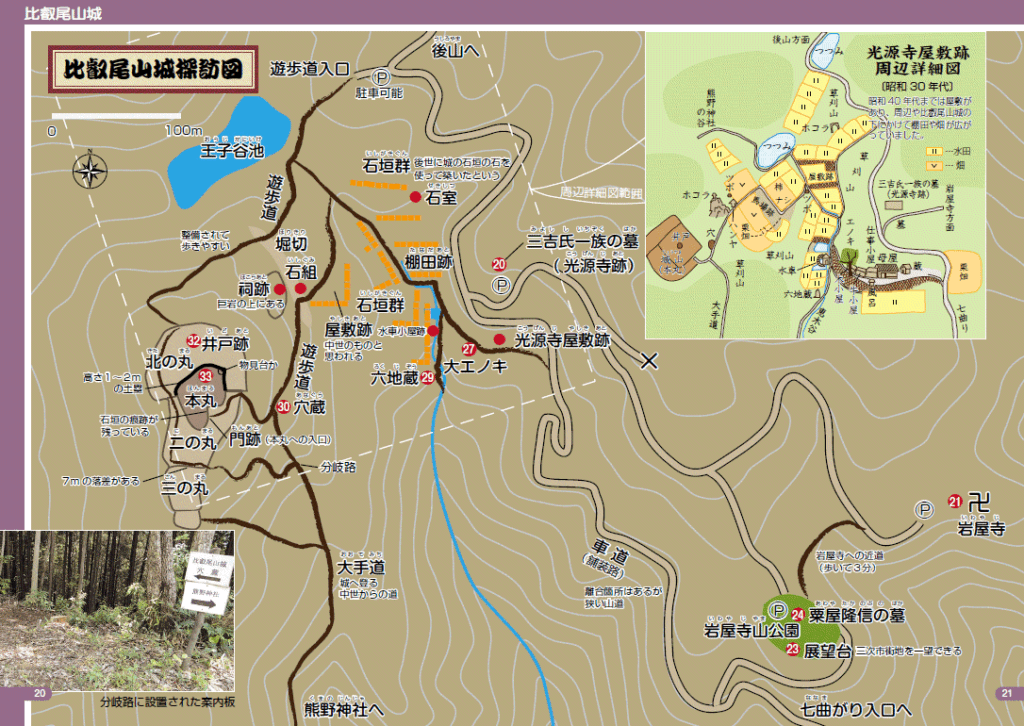 岩屋寺から林道を西に200m行くと、比叡尾山城主三吉氏の菩提寺だった光(高)源寺跡がある。